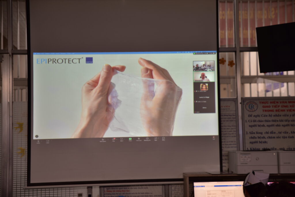 Buổi giới thiệu tập trung vào việc cung cấp thông tin khoa học về Epiprotect – sản phẩm được cấu tạo từ sợi cellulose vi sợi Eiratex™, có cấu trúc gần giống collagen. Các chuyên gia trình bày trực tuyến về cơ chế hoạt động của sản phẩm, khả năng giảm đau, ngăn ngừa nhiễm trùng và hỗ trợ lành thương nhanh trong các ca bỏng và vết thương phức tạp.